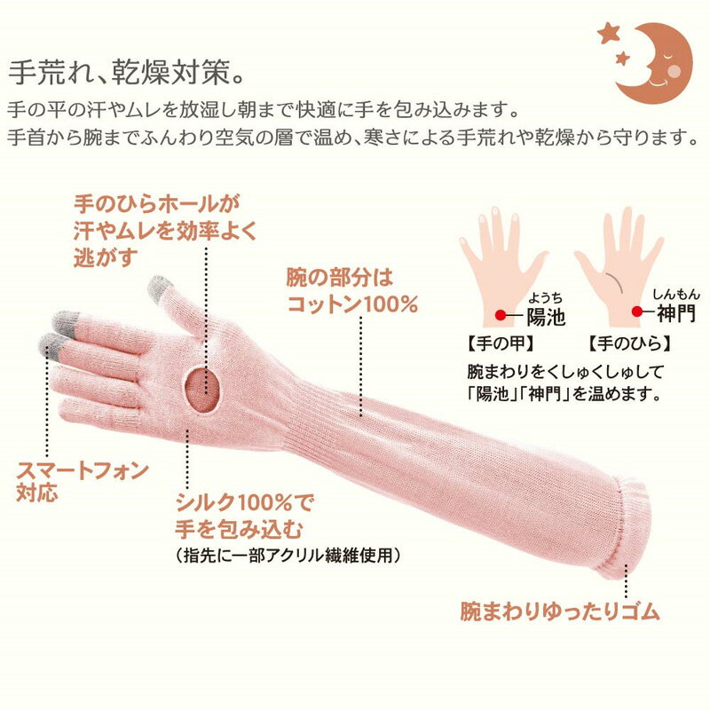 ムレを逃しながらシルクで優しく手を包み込み、朝までぐっすり。